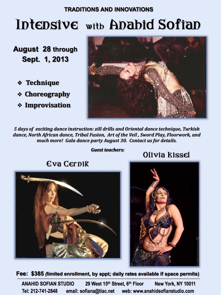 August 20, 2013August 20, 2013oliviakisselLeave a Comment on Dance Intensive at Sofian Studios :: 8/28 – 9/1 :: NYC Dance Intensive at Sofian Studios :: 8/28 – 9/1 :: NYC 3,000+ Years of Dance Evolution has brought us to this moment. Soulful Dance taught by masters: Anahid Sofian w/ special guest teachers Eva Çernik & Olivia Kissel Share this:Share Click to share on Facebook (Opens in new window) Facebook Click to share on Pinterest (Opens in new window) Pinterest Click to share on X (Opens in new window) X Click to email a link to a friend (Opens in new window) Email Click to share on Tumblr (Opens in new window) Tumblr Click to share on Reddit (Opens in new window) Reddit Click to print (Opens in new window) Print Like Loading... Related
